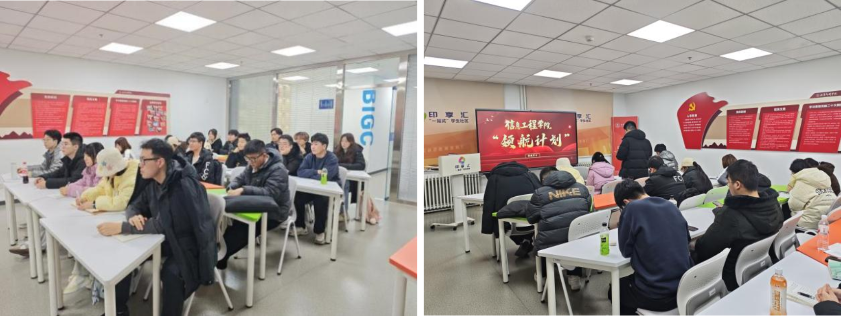 为深入学习2025年中央经济工作会议,引领积极分子加强理论学习,提高政治素养,信息工程学院学生党支部于12月23日晚在印享汇“一站式”学生社区437“先锋引领”党团活动室开展“领航计划”。